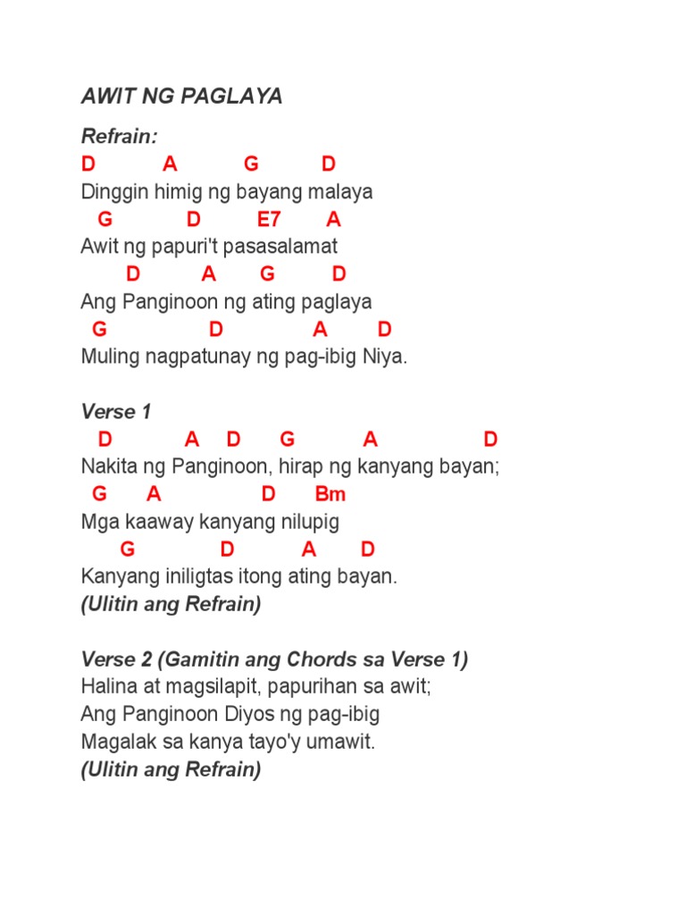 Guitar ChordsLyrics August 12 2020 Awit Ng Bayan By Victory Worship Original Key. We do our best to provide the exact lyrics and chords of you. Just subscribe likeshare the video follow.