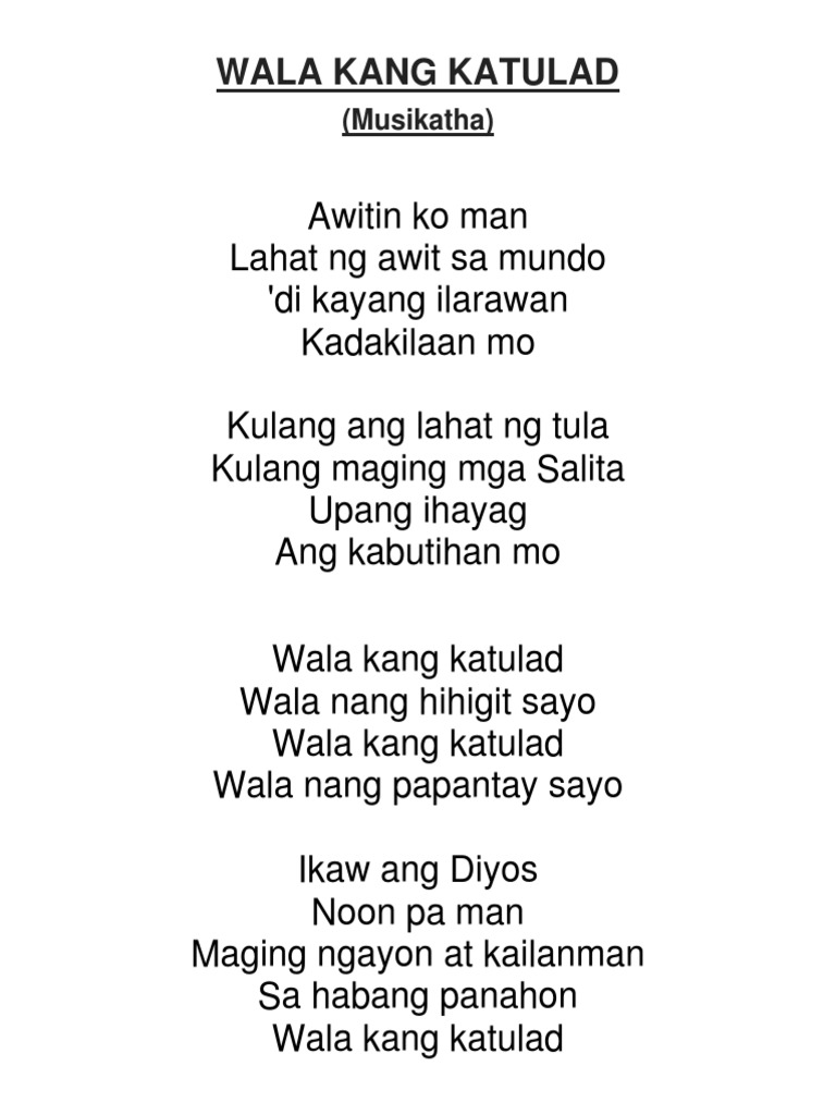 Kapayap aan ang tug on Sa isip ko ng gulong-g ulo Pusong may b agabag Pinalay ang ganap o D iyos Woho woho Repeat Chorus except last word. Admin December 7 2015. Laging hinahayag oh Diyos oh.
